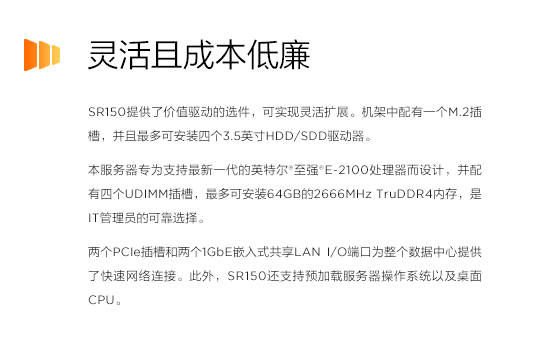 最大64GB的2666MHz TruDDR4 ECC UDIMM(4个插槽)