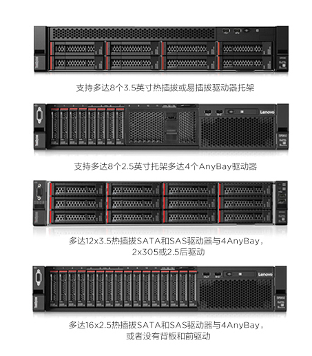 多达 16 个 2.5 英寸硬盘或 12 个 3.5 英寸热插拔硬盘或多达 8 个 3.5 英寸易插拔硬盘;