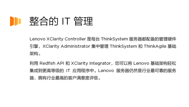 XClarity Controller 嵌入式管理、XClarity Administrator 集中基础架构交付、XClarity Integrator 插件、XClarity Energy Manager 集中服务器电源管理