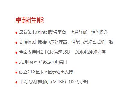 前置:USB3.1 Gen1*2个(其中一个支持快速充电)、Audio*2个;后置:USB3.1 Gen1*4个(其中一个支持键盘开机)、千兆以太网口*1个 后置可选配:DP/VGA/HDMI/串口/Type-C(5选1)+串口 |